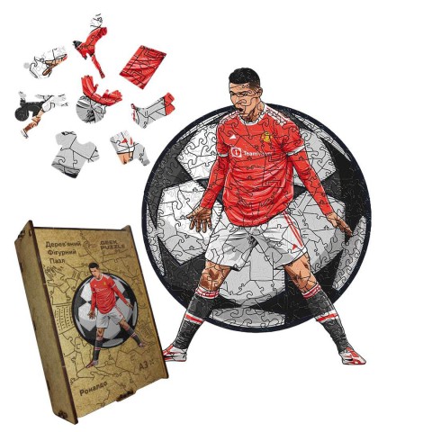 Пазл дерев'яний 'Роналдо': відтворіть легендарного футбольного гравця у всій його славі та майстерності.