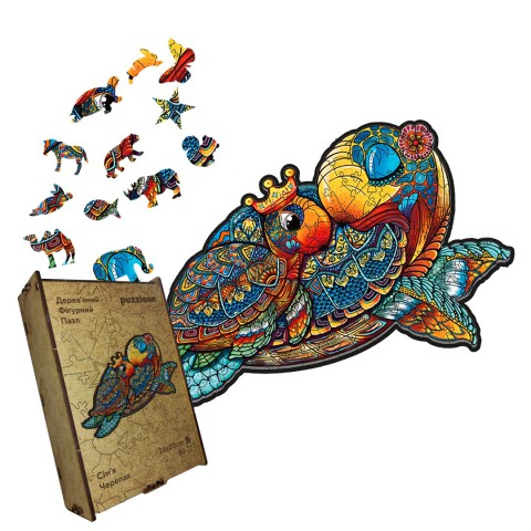 Пазл "Сім'я Черепах" вражає своєю теплотою, кожна дерев'яна деталь якого втілює в собі образ гармонійної та злагодженої сім'ї черепах, яка висловлює любов та підтримку.