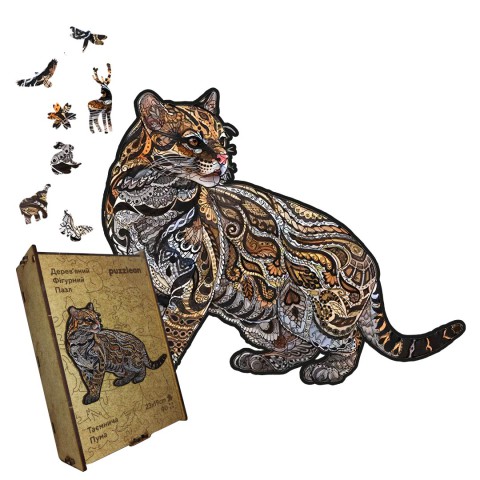 Пазл дерев'яний Таємнича Пума, А2, Дерев'яна коробка 300+ елементів