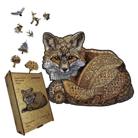 Збираючи пазл "Таємничий Лис", кожен дерев'яний елемент допомагає відтворити образ цього чарівного створіння з його особливими характерними рисами.