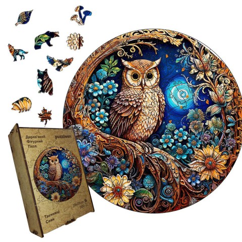 Пориньте у світ природи і нічних пригод разом із дерев’яним фігурним пазлом "Таємниці Сови"! Готовий пазл стане яскравою прикрасою для будь-якої кімнати, особливо для дитячої або творчого простору.