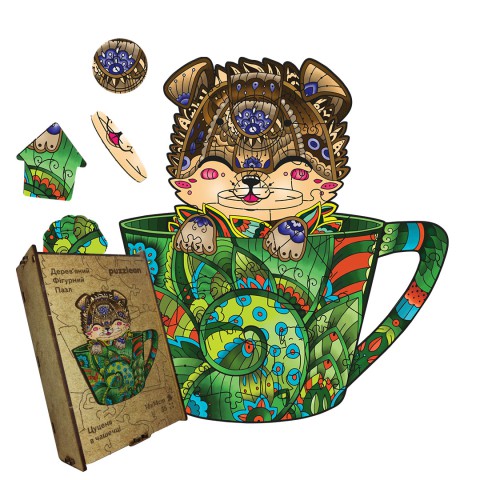 Пазл дерев'яний 'Цуценя в чашечці': зануртесь у світ милого та ніжного, складаючи цю чарівну картину крок за кроком!