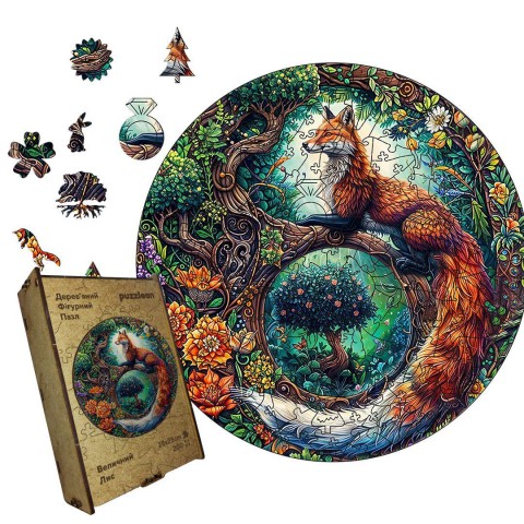 Фігурний дерев’яний пазл "Величний Лис" - це справжнє мистецтво, яке вражає своїм дизайном і яскравими кольорами. Він зображує елегантного лиса в його природному середовищі, наповненому деталями, які створюють атмосферу казки.