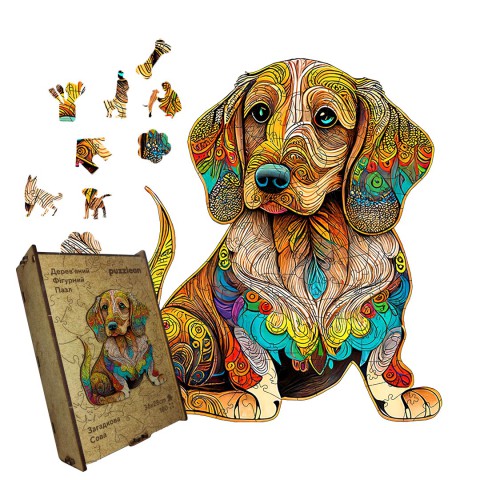 Пазл дерев'яний Загадкове Цуценя, А3, Дерев'яна коробка 200 елементів