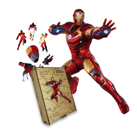 Пазл дерев'яний 'Залізна Людина': відтворіть образ легендарного супергероя, збираючи кожну частинку цього захоплюючого пазлу та відчуйте себе частиною епічних пригод Тоні Старка.