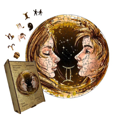 Дізнайтеся про характеристики та властивості Знаку Зодіаку 'Близнюки' через унікальний досвід зі складання нашого дерев'яного пазла.