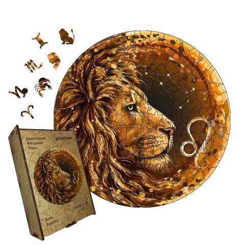 Пазл дерев'яний 'Знак Зодіаку Лев': збудуйте свій шлях у царстві зодіакальних пригод!