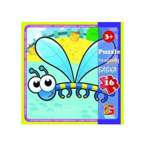 Торгова марка G-Toys, вироблено в Україні. Ліцензія. Комплектність: 16 пазлів, постер (плакат) з зображенням пазла. Пакування коробка : 19 см х 13 см х 3 см. Чудовий, яскравий пазл з щільного картону створений для дітей молодшого віку. Стимулює в дитині сенсорне сприйняття та інтелектуально-пізнавальний розвиток. Великі яскраві деталі, спеціально призначені для маленьких дитячих ручок, легко з 'єднуються між собою і сприяють розвитку дрібної моторики рук.