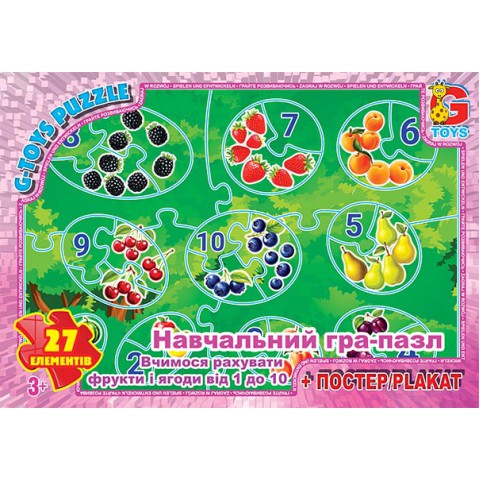 Пазли G-Toys Рахуємо фрукти та ягоди від 1 до 10, 27 елементів