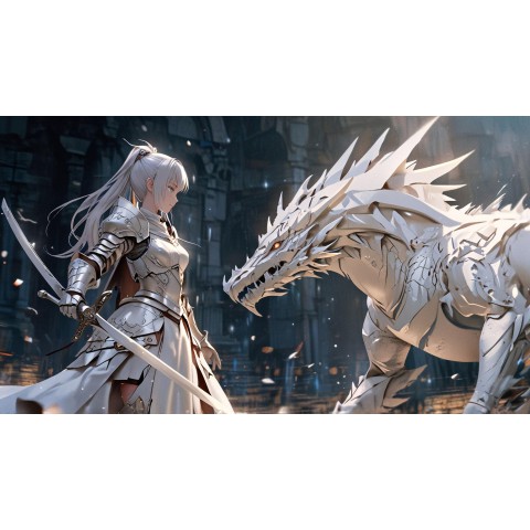 Зробіть свій день яскравішим з дерев’яним класичним пазлом Дівчина воїн та дракон, А4, Дерев'яна коробка 100 елементів