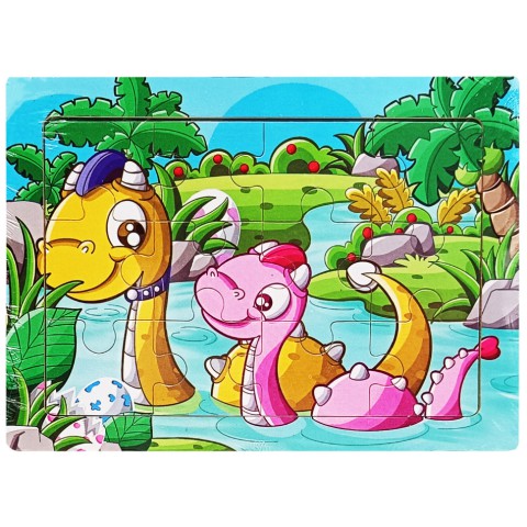 Дитячий дерев'яний пазл-вкладиш "Купання динозавриків" MD 1343-1, 12 елементів