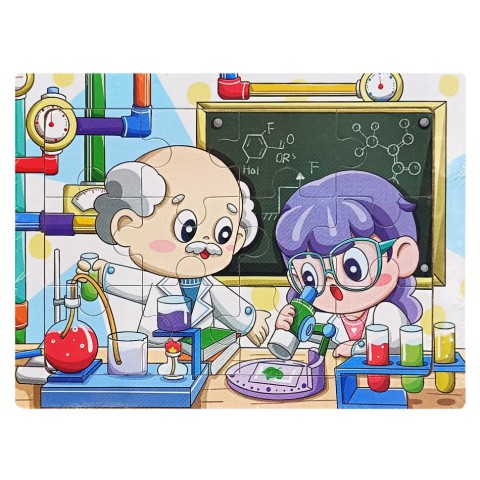 Дитячий дерев'яний пазл-вкладиш "Урок хімії" MD 1343-6, 12 елементів