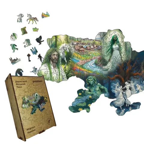 Пазл "Україна Міфічна" — це унікальна дерев'яна головоломка, яка поєднує карту України з чарівними образами зі світу української міфології.