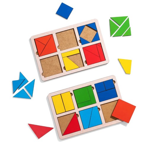 Виготовлені з натуральної деревини, допомагають розвивати просторове мислення, увагу та кмітливість, підходять для дітей від 3 років для складання квадратів.