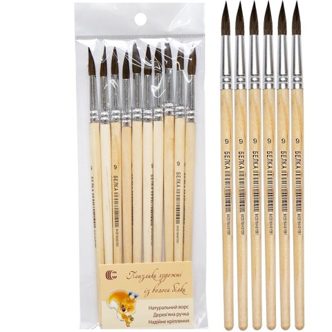 Пензлик Білка №9 виготовлений з натурального ворсу білки. Кругла форма підходить для акварелі, гуаші та акрилу. Забезпечує рівномірне нанесення фарби, плавні переходи та деталізацію. Довжина пензля – 17 см.