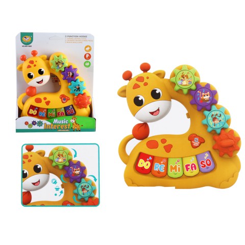 Піаніно дитяче Жираф з шестернями, музикою та світлом – багатофункціональна іграшка. Обертання шестерень, мелодії. Розвиває логіку. Купуйте піаніно дитяче Жираф шестерні музика світло для веселого розвитку!