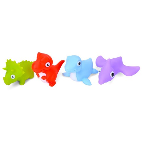 Набір іграшок для купання включає 4 шт. стильних і яскравих фігурок динозаврів, які допоможуть зробити водні ігри веселішими. Розмір кожної іграшки – від 6 см. Ідеально підходять для дітей!