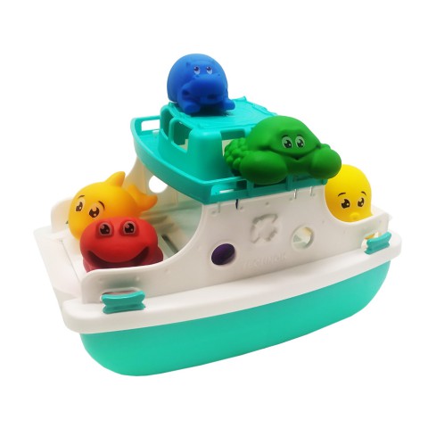 Матусі прекрасно знають, як перетворити купання дітей у веселу і захоплюючу гру. В цьому батькам допоможуть іграшки для ванної. Наповніть теплу ванну цікавими тваринками і Ваш малюк буде приймати водні процедури з захопленням. Іграшка "Пором ТехноК" з фігурками на борту неодмінно сподобається малюкам.Пором - це неймовірне поєднання краси і функціональності. Його конструкція дозволяє добре плавати і перевозити улюблені іграшки. Пором обладнаний двома трапами, які ховаються в корпусі і не заважають руху. У верхній частині розміщена рубка капітана, палуба для пасажирів і майданчик для вертольота. Спеціальні отвори в корпусі допоможуть легко злити воду з порома і висушити його. Так іграшка буде залишатися чистою та безпечною для дітей.Звірятка, зручно розмістилися на палубі - різноманітні представники водного світу: акула, восьминіг, морська зірка, бегемотик, жаба і краб. Надруковані очі методом тамподруку додають іграшок радісних емоцій і краси, з ними звірі ніби оживають. Звірятка відмінно тримаються на воді, що дозволяє дітям придумувати різноманітні ігри. А ще фігурки можна використовувати для навчання: вивчати кольори, назви тварин, робити перші кроки в рахунку. Такі ігри розвивають у дітей дрібну моторику, мовлення, уяву і фантазію.Іграшка "Пором ТехноК" виготовлена з міцного нетоксичного пластику. Використання тільки високоякісних барвників забезпечує яскравий колір протягом тривалого терміну використання. М'які звірятка виготовлені із спеціального гіпоалергенного матеріалу - пластизолю. Матеріал, використовуваний в наших іграшках пройшов складну перевірку на відсутність шкідливих речовин і отримав відповідні гігієнічні висновки акредитованих лабораторій. Іграшки з пластизолю м'які, міцні і приємні на дотик, без різкого запаху.З іграшкою "Пором ТехноК" кожне купання Вашого малюка буде наповнена радістю і захоплюючими пригодами. З ним весело грати у ванній, на річці і на пляжі, і навіть вдома.Зверніть увагу! Після використання необхідно промити іграшки під проточною водою і висушити. Не використовувати, не сушити і не зберігати поблизу нагрівальних приладів.Комплектація: пором, фігури різного кольору і форми 6 шт.Упаковка - сітка з кольорової картонної етикеткою.Для дітей від 3-х років.