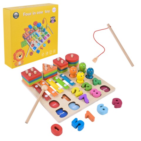 Дитяча дерев’яна іграшка "4 в 1" C9404 рибалка, ксилофон