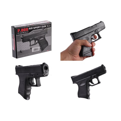 Пластиковий пістолет на пульках Р.698 – це реалістична іграшка для сюжетних ігор. Пістолет виготовлений з міцного пластику. Гра розвиває влучність та координацію. Купуйте цей пістолет, щоб дитина могла грати в поліцейських чи шпигунів.