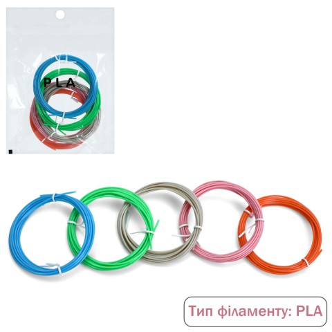 PLA філомент, запаска для 3D ручки, 5 шт., 5 кольорів, по 3 м, 1.75 мм, 15x21x2.5 см