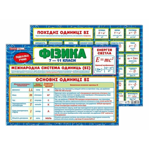 Ця підказка стане вашим незамінним помічником у вивченні фізики. Одна сторона містить таку корисну інформацію, як формула енергії світла, міжнародна система одиниць SI та основні одиниці SI. На іншій стороні ви знайдете похідні одиниці SI, що допоможе вам у глибшому розумінні матеріалу.