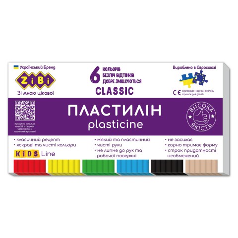 Пластилін Classic KIDS Line, 6 кольорів, 120 г – Пластилін Classic KIDS Line із 6 яскравими кольорами вагою 120 г – ідеальний старт для дитячої творчості. М’яка текстура легко розминається, не липне до рук і не залишає плям. Безпечний склад сприяє розвитку дрібної моторики та уяви. Кольори змішуються, створюючи нові відтінки. Упаковка з картонною коробкою зручна для зберігання. Чудовий вибір для дошкільнят і початкових шкільних занять. Замовляйте на Demsky.com.ua для перших творчих кроків!