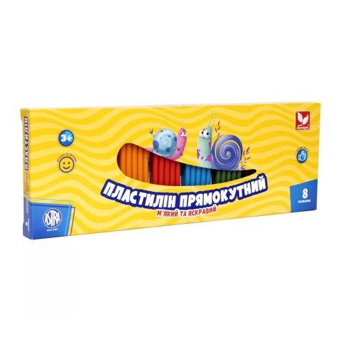 Прямокутний набір пластиліну 8 різних кольорів - це ідеальний творчий інструмент для дітей і дорослих, який відкриває безмежні можливості для розвитку фантазії та мистецьких навичок. Цей набір включає в себе пластилін у різних кольорах, що можна змішувати, ламати, обертати та моделювати для створення різноманітних об'єктів, фігур і малюнків.