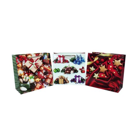 Подарунковий пакет, 150 г/м², Новорічний, 16x16x7 см, 6 шт. в упаковці (В асортименті)