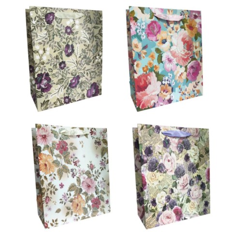 Подарунковий пакет картонний, 200 г/м², Квітковий, 21x26x10 см, 6 шт. в упаковці (В асортименті)