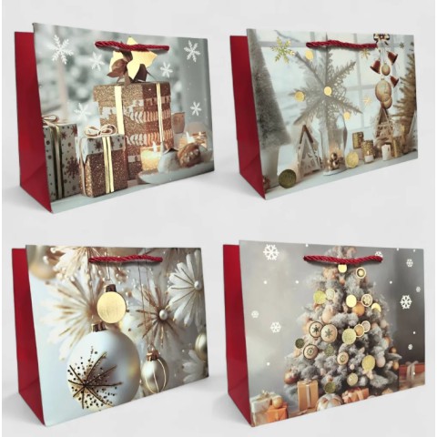 Подарунковий пакет Новорічні деталі 31×42×12 см набір 4 шт bl2502-212 – це набір 4 пакетів з новорічними деталями, ідеальний для свят, деталізований дизайн. Зроблений з ламінованого паперу, цей пакет витримує, з ручками. Деталі додають чарівності. Цей набір креативний. Подарунковий пакет Новорічні деталі 31×42×12 см набір 4 шт bl2502-212 – це чудовий вибір. Він святковий. Замовте подарунковий пакет Новорічні деталі 31×42×12 см набір 4 шт bl2502-212, щоб пакувати деталізовано!