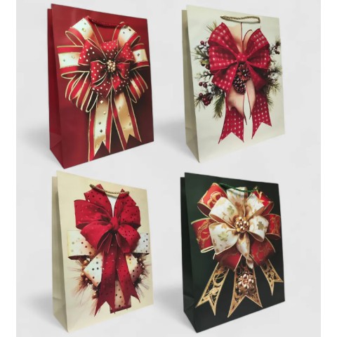 Подарунковий пакет Новорічний бантик 31×42×12 см набір 4 шт bl2502-178