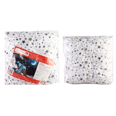 Велика подушка "Місячне сяйво" 70×70 см з натуральної бавовни з набивним малюнком та силіконізованим волокном – комфорт для глибокого сну в новорічні ночі! М'яка, пружна, гіпоалергенна, дихаюча тканина та наповнювач забезпечують підтримку шиї, швидко відновлюють форму.