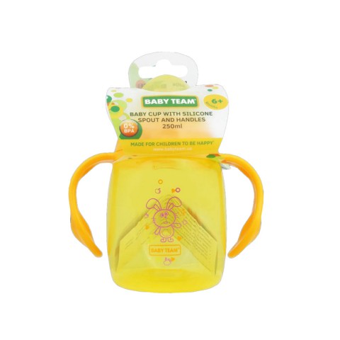 BABY TEAM Непроливайки, допомагають навчитись малюку пити самостійно, не проливаючи напій. М'який силіконовий спаут не завдає шкоди ніжним яснам та зубкам малюка. Форма поїльника з нахилом полегшує процес пиття. Зручні ручки спеціально створені для маленьких долоньок. Кришечка захищає від забруднень. Ідеальний під час прогулянок та подорожей! Можна використовувати в мікрохвильовій печі, стерилізувати, обдавати окропом та мити в посудомийній машині (верхній рівень).