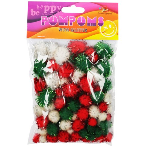 Купіть помпони блискучі різні розміри 3 кольори набір 80 шт для натхнення на креативні ідеї!