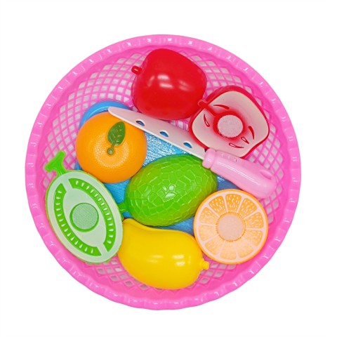У наборі: овочі, фрукти; ніж; дощечка; тарілка.