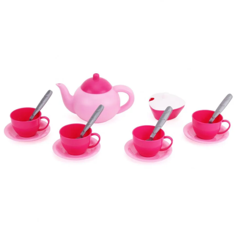 Яскравий пластиковий кухонний набір для гри в чаювання. У комплекті: пластиковий чайник з кришечкою, 4 чашки на блюдечках, 4 ложечки і цукорниця з кришкою. Розмір чашечки: 4,5 см. Набір виготовлений з якісних і безпечних матеріалів.Комплектація: Чайник з кришкою, 4 блюдця, 4 чашечки, 4 ложечки, цукорниця з кришкою