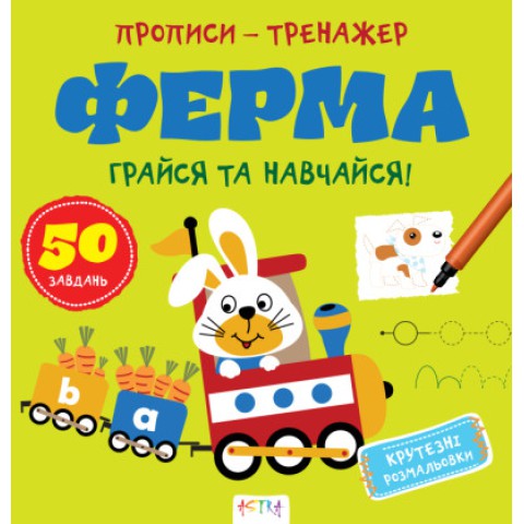 Прописи-тренажер: Ферма – Прописи-тренажер Ферма – навчальний посібник із фермерською тематикою. Яскраві ілюстрації тварин і завдання з обведення допомагають вивчити букви, цифри та розвинути дрібну моторику. Виготовлений із міцного паперу, розміром 20x28 см. Сприяє підготовці до письма та уяві. Замовляйте на Demsky.com.ua для веселого навчання!