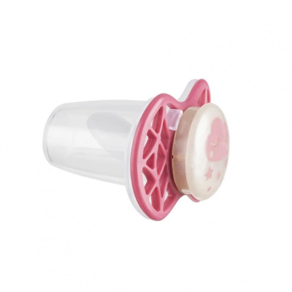 Ортодонтична пустушка Air55 Cool, яка світитися в темряві. Платівка соски на 55% складається з повітря забезпечуючи майже повну аерацію області навколо рота, уникаючи скупчення слини, яка може дратувати шкіру. Захисний ковпачок для соски для підтримки чистоти соски і стерилізації в мікрохвильовій печі простим додаванням води.