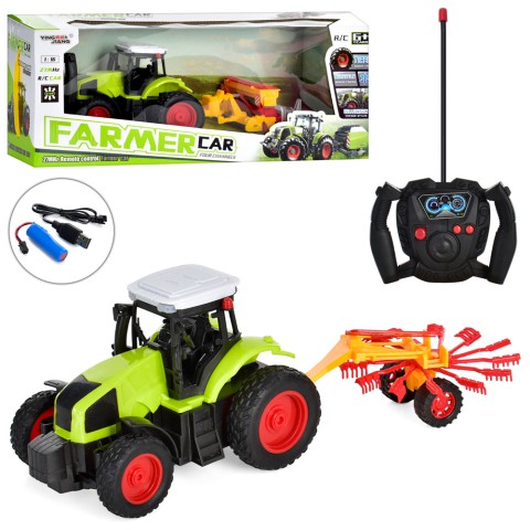 Трактор радіокерований, 19 см, 1:16, із причепом, USB-зарядка, 45x18.5x13 см (В асортименті)
