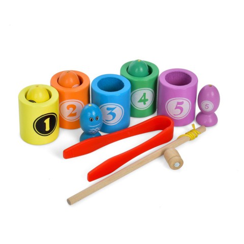 За допомогою яскравих рибок і діжок дитина зможе навчитися сортувати за кольорами та вивчити рахунок у межах п'яти. А вудка та пінцет допоможуть у розвитку дрібної моторики рук.