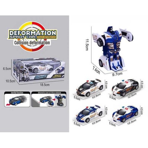 Машинка-трансформер Поліція інерційна – динамічна модель, що перетворюється, виготовлена з пластику з інерційним механізмом для руху. Трансформація в робота, деталі поліції додають ролей. Підходить для хлопчиків від 4 років як активна іграшка, розвиває моторику та фантазію.