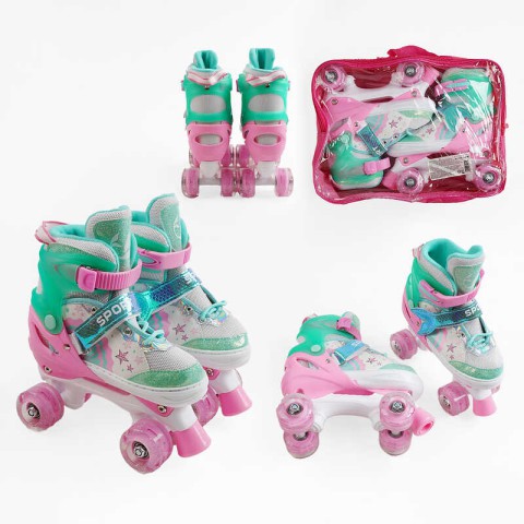 Ролики, розмір 29-33, рожевий, PU колеса, світяться, діаметр коліс 4.5 см, у сумці