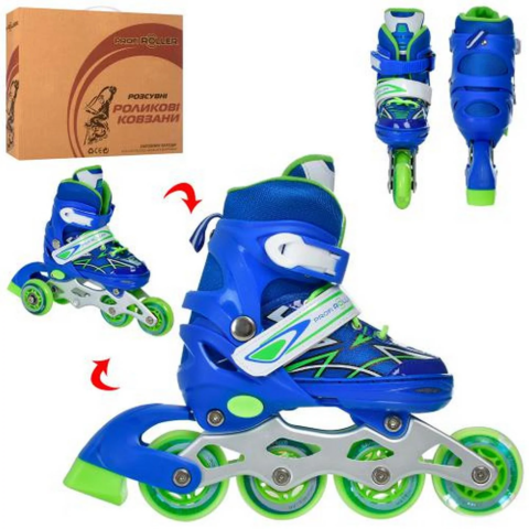 Дитячі ролики (27-30 розмір) Profi A4142 - мають алюмінієву раму, що зменшує їх вагу і робить їзду ще більш легкої, ролики розсувні завдяки цьому їх можна відрегулювати під ногу дитини, дана модель фіксується на нозі дитини з допомогою шнурівки і баклі, коліщата виготовлені з поліуретану, що гарантує їм довгий термін служби. Дитячі ролики Profi A4142 обладнані надійним заднім гальмом з його допомогою дитина зможе швидко зробити зупинку.Дитячі ролики Profi A4142 стануть відмінним подарунком для дитини, катання на роликах допомагає покращити координацію, а також просто весело і цікаво провести час, дана модель поєднує в собі високу якість, надійність і практичність, а також невелику вартість.Тип - розсувніТип черевика - м'якіРозмір - 27-30 см Застібка - шнурівка+бакляалюмінієва рамаколеса ПУ 64 мм, 1светЗадні гальма