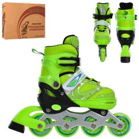 Особливості дитячих розсувних роликів Profi A 4145:роликові ковзани з можливістю регулювання розмірів;можливість регулювання в 4-х розмірах;розмір легко регулюється за допомогою спеціальних кнопок;м'який черевик;мембранна підкладка забезпечує хорошу вентиляцію черевика;зручна застібка-бакля + шнурівка добре фіксують ногу;надійна рама з алюмінію;колеса поліуретанові, світяться;підшипники АВЕС-7;яскравий сучасний дизайн.