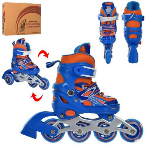 Розсувні дитячі роликові ковзани для початківців ролерів. Катання на роликових ковзанах допоможе розвинути у дитини координацію рухів і почуття рівноваги. Зручний високий напівм'який черевик добре сидить на нозі і не дасть нозі вискочити під час катання, а також захищає ногу від травм. Вентильований лайнер дозволяє нозі дихати. Корпус виготовлений з високоякісного полімеру і оснащений міцною алюмінієвою рамою і поліуретановими колесами. Система регулювання на 4 повних розміру дозволить вашій дитині кататися кілька сезонів, тим самим економити ваші гроші.Ролики розсувніШнурівка+бакля,Алюмінієва рамаКолеса ПУ 64 мм - одне колесо світитьсяУстілка 16 см