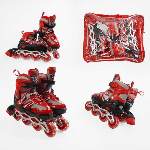 Роликові ковзани, розмір 29-33, PVC колеса, устілка 17-20 см, червоний, INLINE SKATE, 73426-S