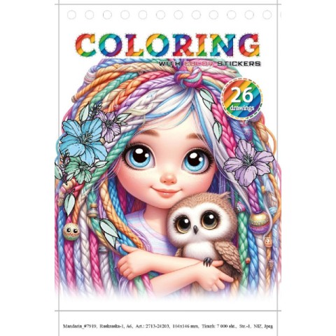 Розмальовка з наліпками, 24203, 12 аркушів, А5