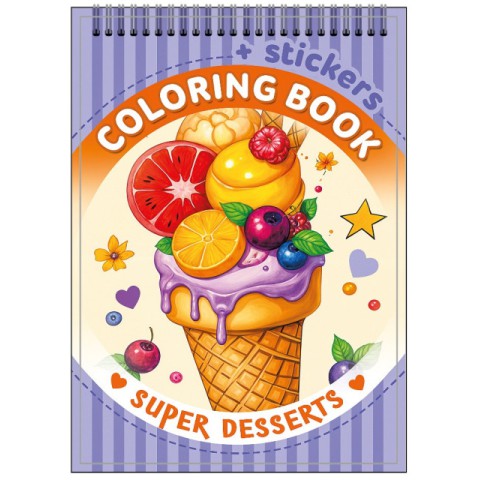 Розмальовка з наліпками 105×148 мм 12 аркушів пружина 24208
