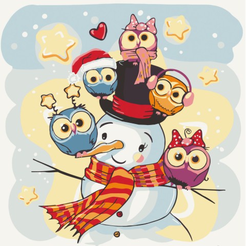 Розпис на полотні "Сніговик з совами" Art Craft 15550-AC 30х30 см